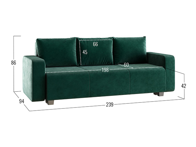 Прямой диван Идрис прекрасно подойдет для мультифункциональной комнаты. Днем модель послужит местом для отдыха, а ночью превратится в удобную кровать. В дизайне сделан акцент на идеальную симметрию, плавность линий и объемные формы. Спинка выполнена в обивочной ткани, поэтому диван можно установить не только вдоль стены, но и по центру гостиной.