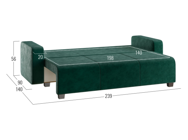 В разложенном виде образуется ровная и комфортная для сна поверхность. В основании предусмотрен просторный короб с двумя отсеками, что делает диван еще практичнее и создает дополнительные ниши для хранения вещей.