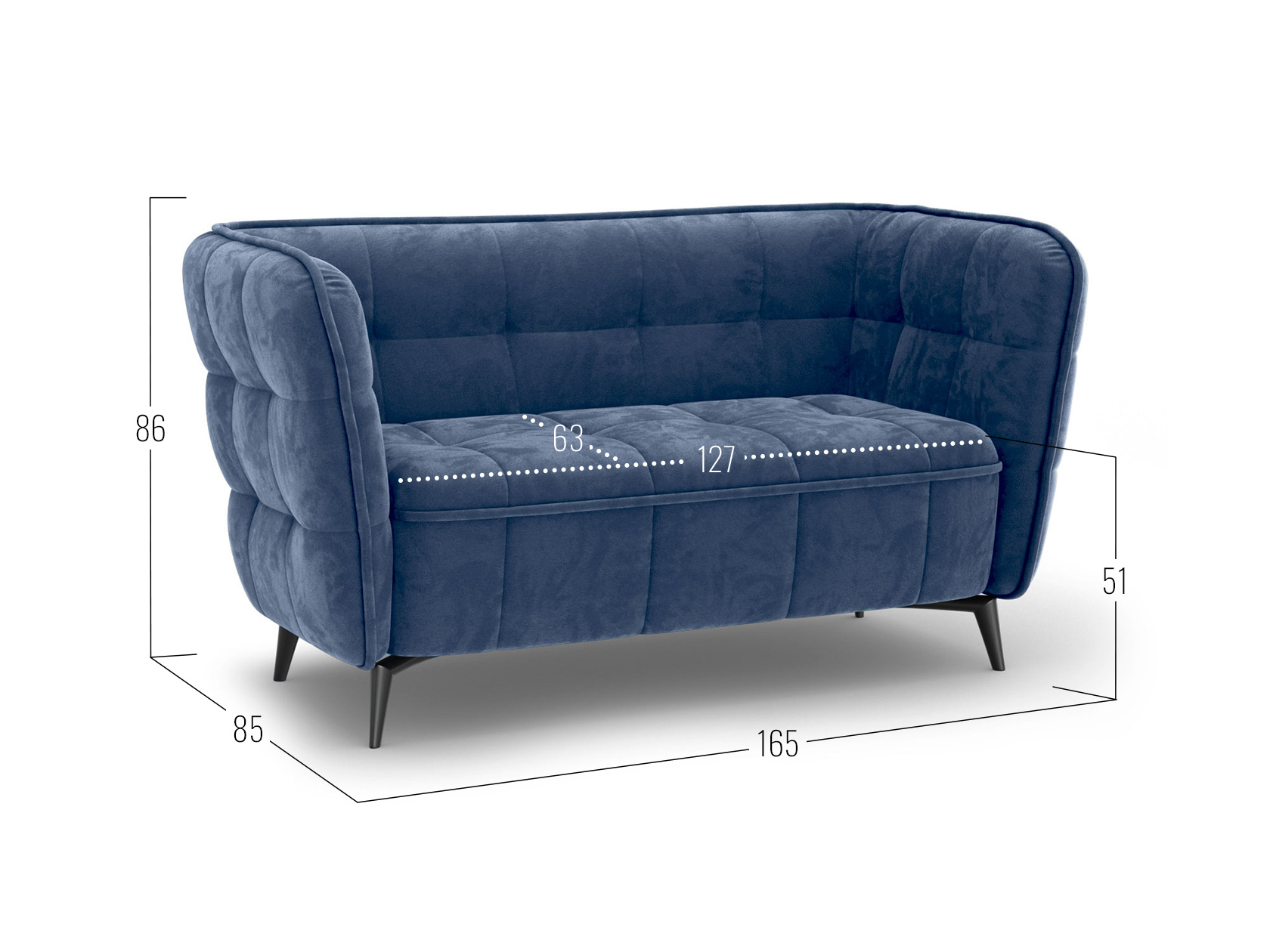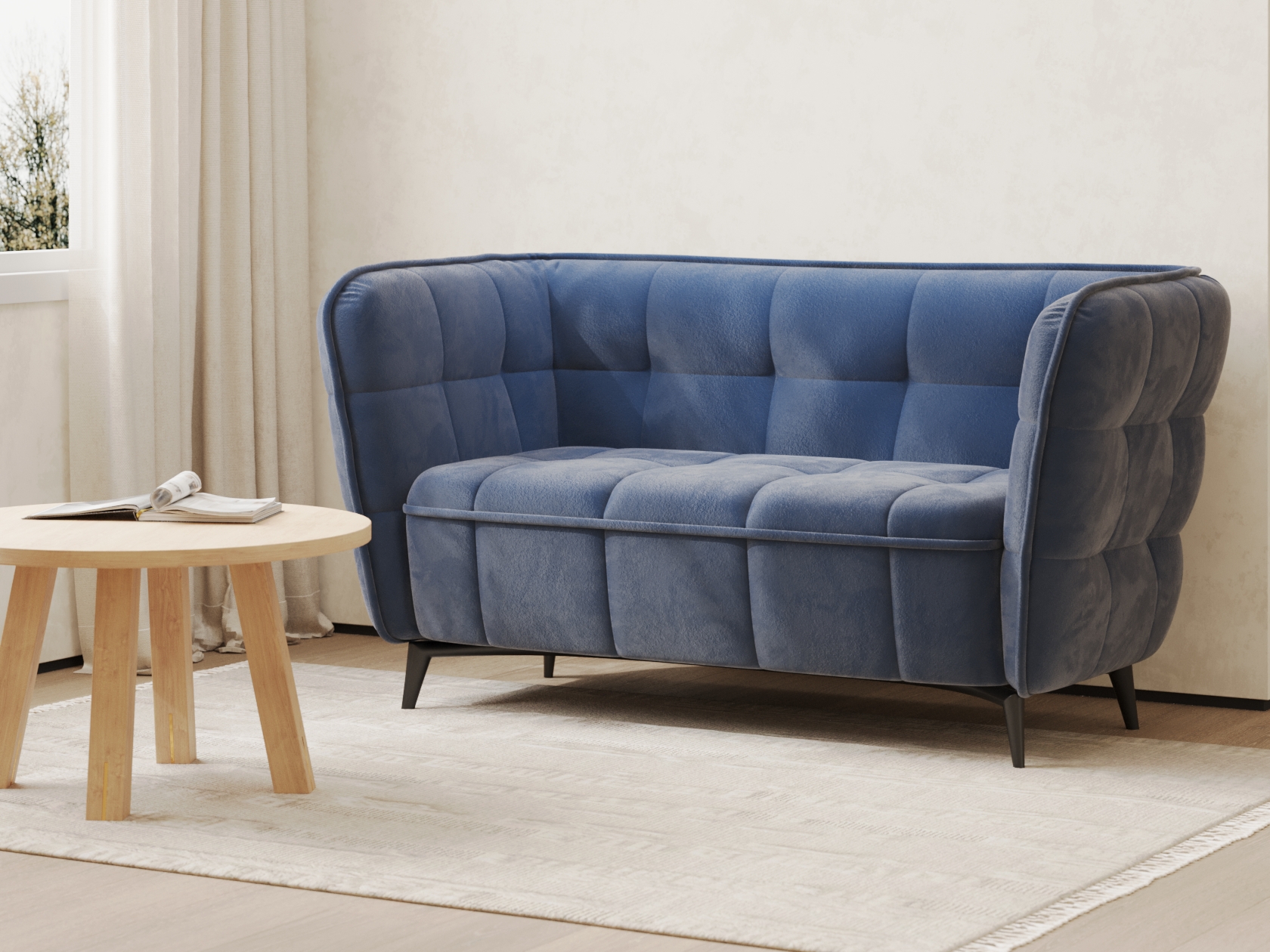 Прямой диван Клео Синий, велюр