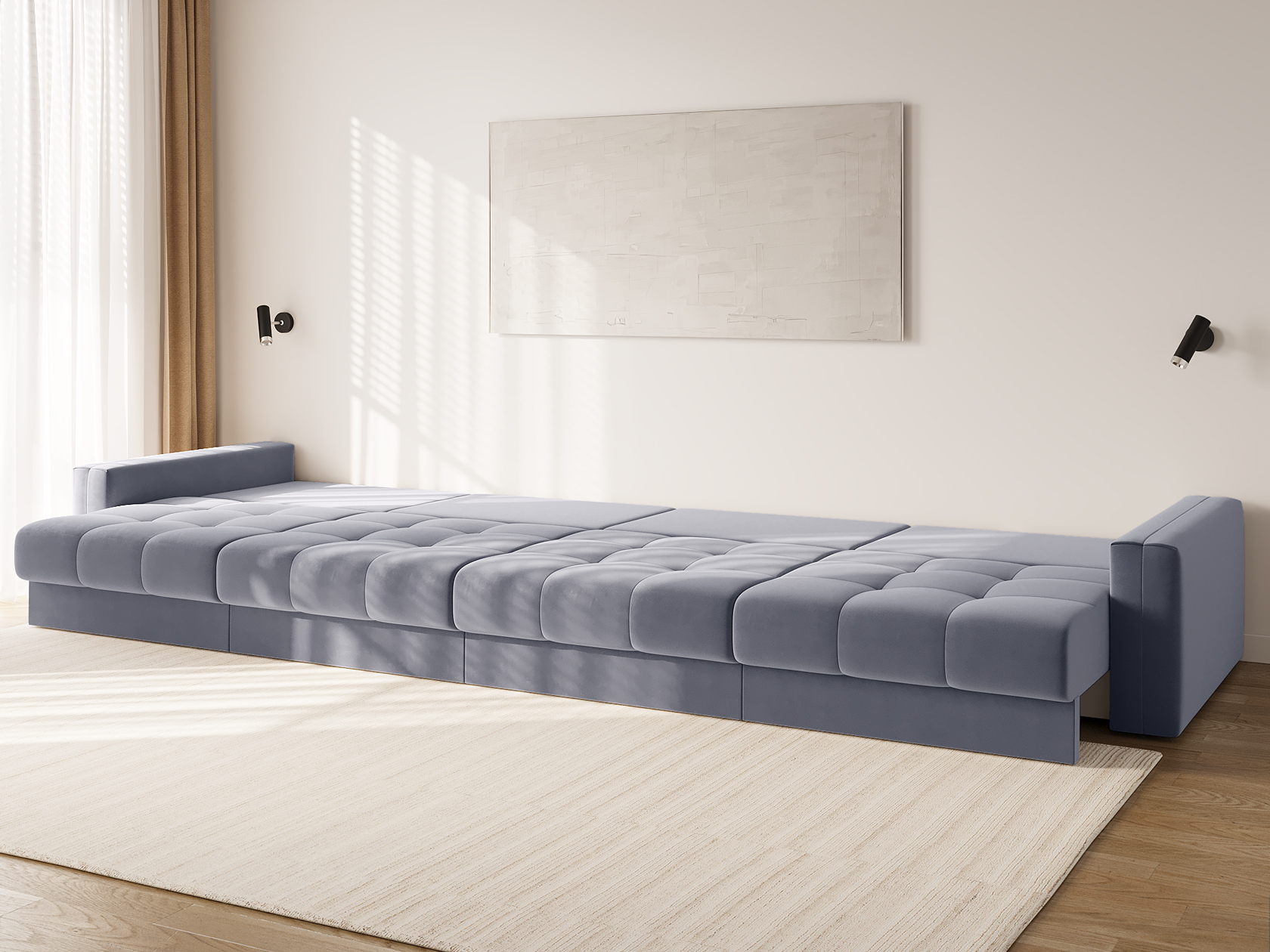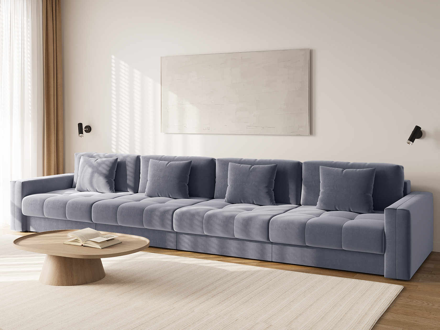 Прямой диван 4 секции Клермон Серый, велюр