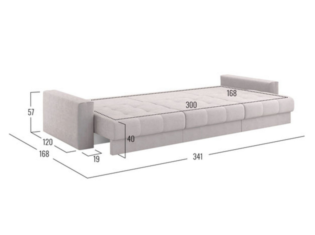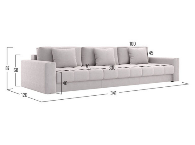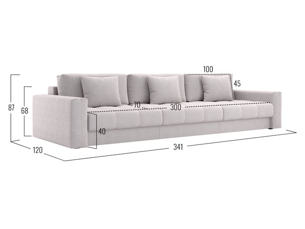 - Посадочное место без подушек (ШхГ): 300 х 100 см.
