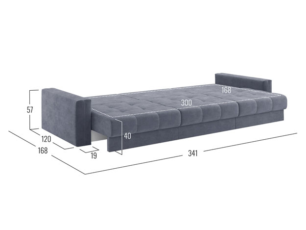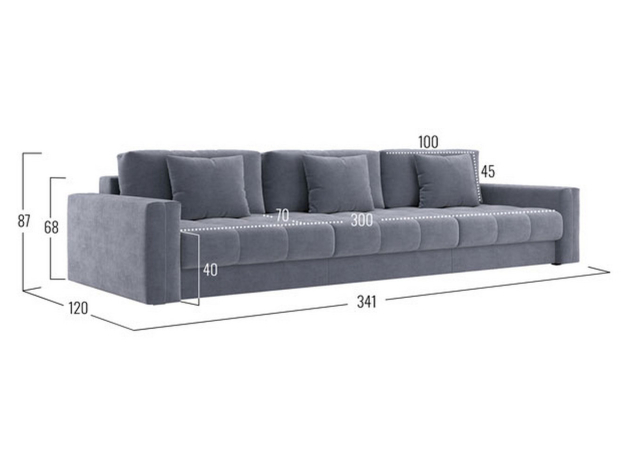 - Посадочное место без подушек (ШхГ): 300 х 100 см.