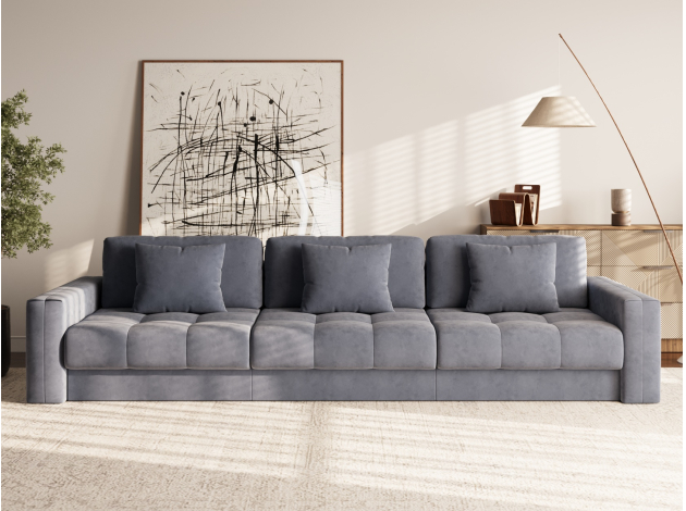 Прямой диван Клермон Макси — основательная модель для комфортабельного отдыха. В просторной гостиной диван можно использовать для зонирования пространства, установив в любой точке комнаты. Приспинные и декоративные подушки позволяют устроиться максимально удобно, независимо от роста и комплекции сидящего.