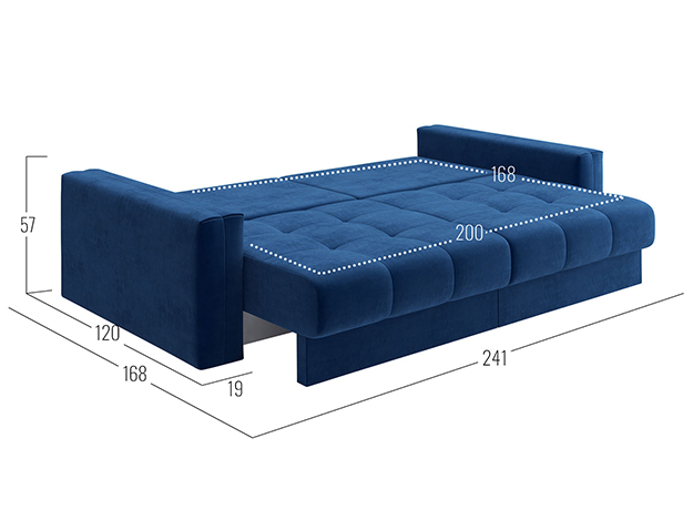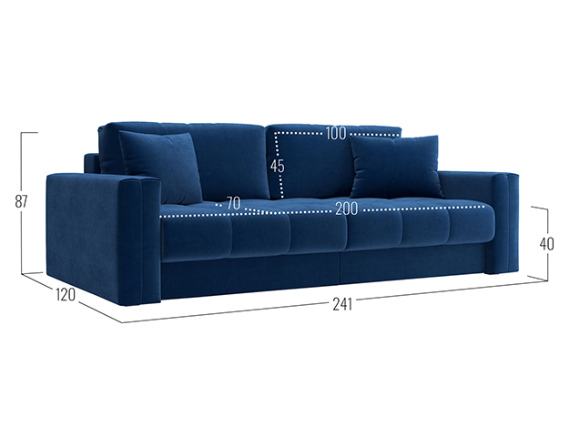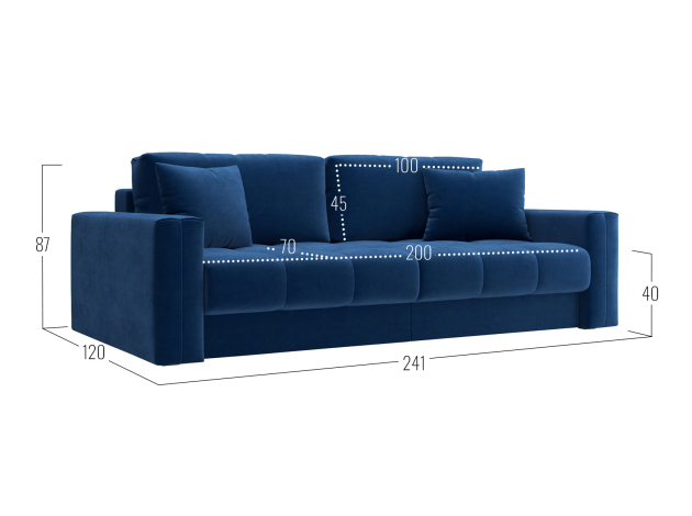 Прямой диван Клермон Синий, велюр
