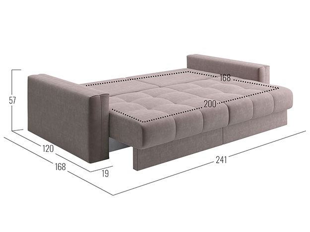 - Посадочное место без подушек (ШхГ): 200 х 100 см.