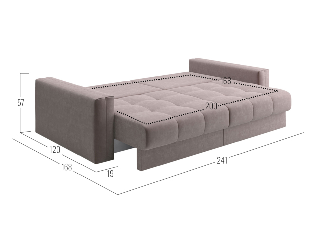 Прямой диван Клермон станет отличным решением для оформления стильной и комфортной зоны отдыха в гостиной или квартире-студии. Приспинные и декоративные подушки позволят регулировать глубину посадки и занять наиболее удобное положение, а на широкие подлокотники можно положить пульт от телевизора или телефон. Конструкция равномерно распределяет нагрузку, а механизм трансформации мгновенно превращает диван в полноценную спальную зону. Модель предусматривает вместительный короб для хранения постельных принадлежностей. Спинка дивана выполнена в основной ткани, что дает возможность использовать его для зонирования пространства.