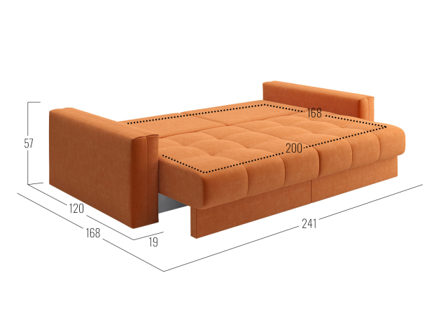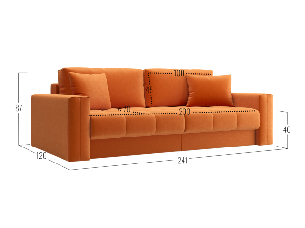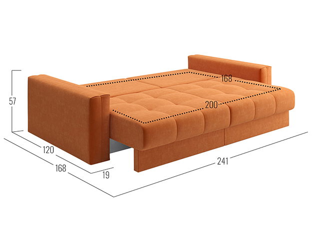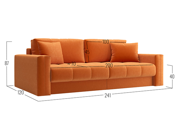 - Посадочное место без подушек (ШхГ): 200 х 100 см.