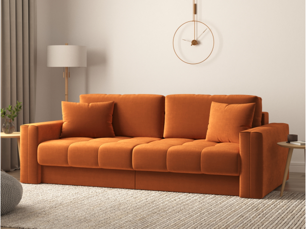 Прямой диван Клермон станет отличным решением для оформления стильной и комфортной зоны отдыха в гостиной или квартире-студии. Приспинные и декоративные подушки позволят регулировать глубину посадки и занять наиболее удобное положение, а на широкие подлокотники можно положить пульт от телевизора или телефон. Конструкция равномерно распределяет нагрузку, а механизм трансформации мгновенно превращает диван в полноценную спальную зону. Модель предусматривает вместительный короб для хранения постельных принадлежностей. Спинка дивана выполнена в основной ткани, что дает возможность использовать его для зонирования пространства.