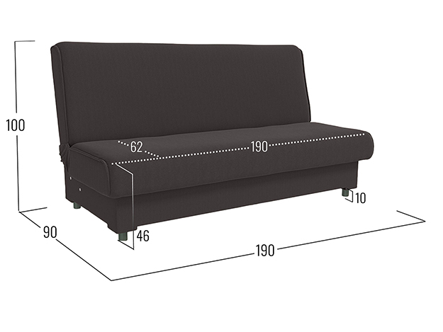 Прямой диван Конти идеален для малогабаритной квартиры. Компактный размер и отсутствие подлокотников позволяют расположить модель даже в очень в ограниченном пространстве. Надежный механизм трансформации быстро превращает диван в ровное место для сна. В основании предусмотрен бельевой ящик — актуальное дополнение для хранения в небольшой комнате.