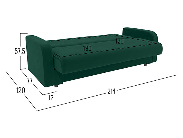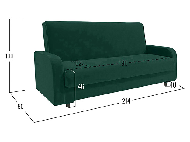 - Посадочное место (ВхШхГ): 46 х 190 х 62 см.