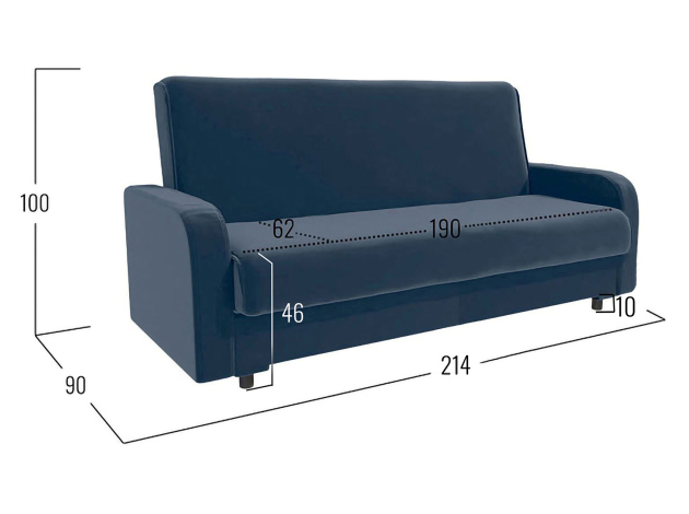 - Посадочное место (ВхШхГ): 46 х 190 х 62 см.