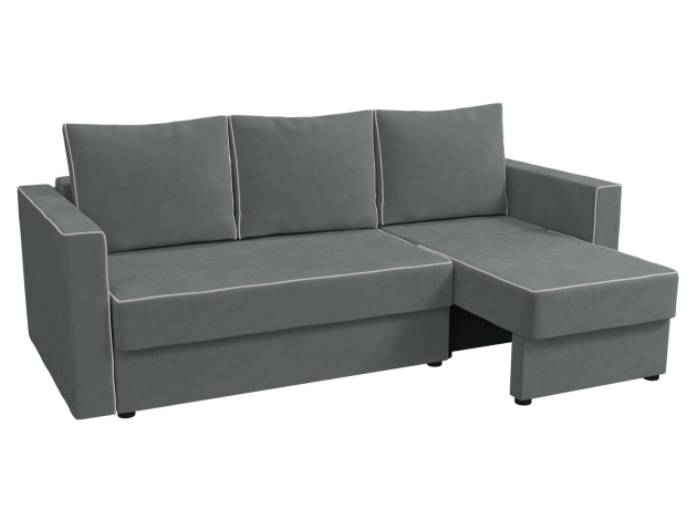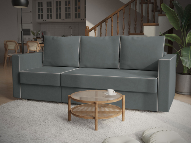 Модель легко раскладывается на время сна, превращаясь в просторную кровать. Сиденье состоит из двух секций, выдвинув одну из них, диван можно трансформировать в угловой. Расположение угла определяется во время сборки, поэтому модель отлично адаптируется для любой планировки.