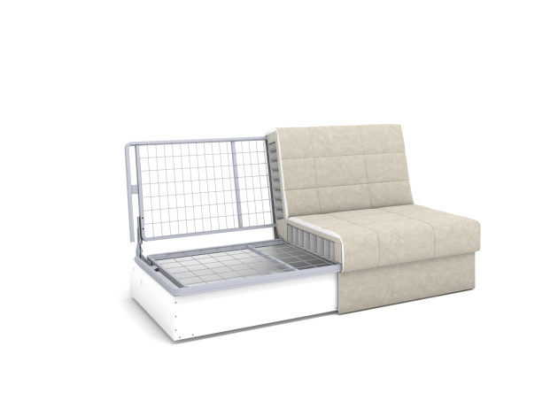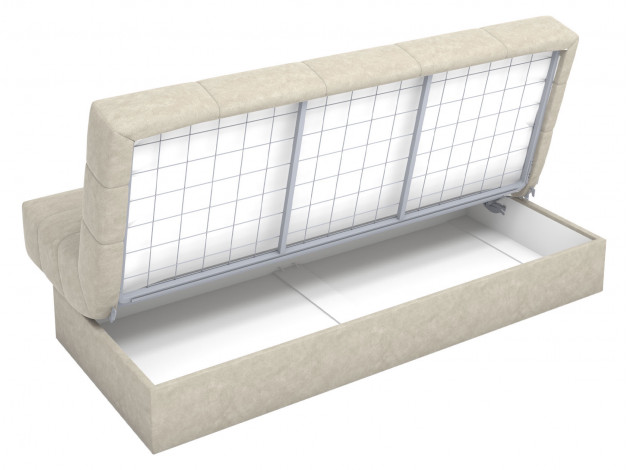 На время сна он легко превращается в ровное спальное место без неудобных стыков и перепадов высоты. Ящик для белья стоит на полу, поэтому в нём можно хранить достаточно тяжелые вещи. Чехол легко снимается без помощи специалиста для стирки или смены на модель в другом дизайне.