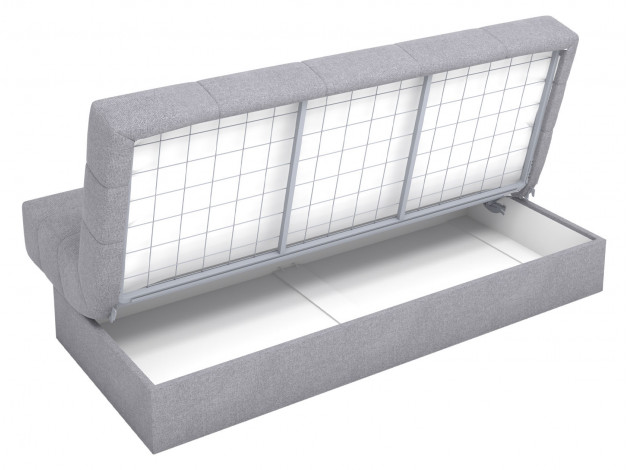 На время сна он легко превращается в ровное спальное место без неудобных стыков и перепадов высоты. Ящик для белья стоит на полу, поэтому в нём можно хранить достаточно тяжелые вещи. Чехол легко снимается без помощи специалиста для стирки или смены на модель в другом дизайне.