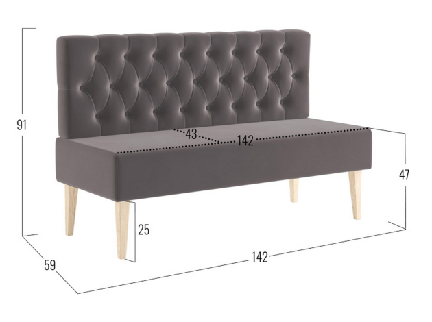 Прямой диван Мирри — элегантное решение для придания интерьеру индивидуальности. Каретная стяжка подчеркивает особый шарм модели и вносит нотку роскоши в атмосферу современной гостиной. Высокие деревянные ножки и отсутствие подлокотников создают ощущение визуальной легкости, поэтому диван отлично смотрится как в просторном, так и небольшом помещении.