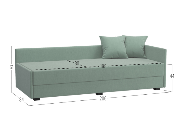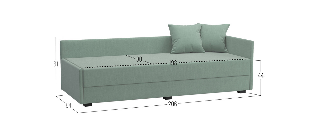- Декоративные подушки (ВхШхГ): 44 х 44 х 10 см (2 шт.).