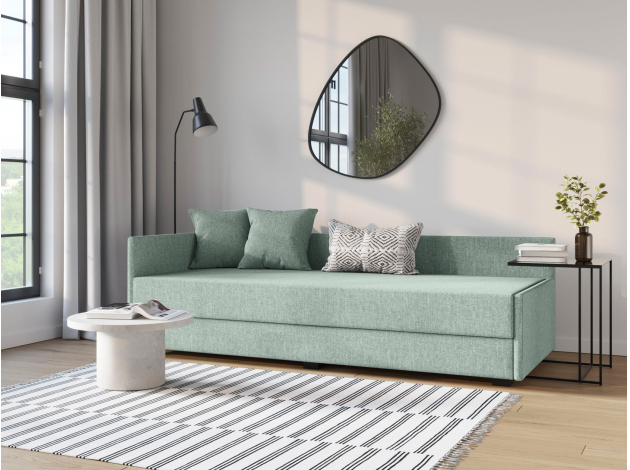 Прямой диван Нордик объединяет минималистичный внешний вид, практичность и функциональность. Сиденье с низкой спинкой и узким подлокотником дополнено двумя декоративными подушками, благодаря которым модель становится удобнее. Такой диван отлично подойдет для небольшой комнаты или студии. Ящик для хранения позволяет держать под рукой постельное белье или запасное одеяло.