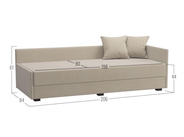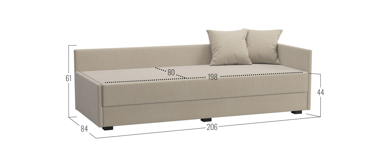 - Декоративные подушки (ВхШхГ): 44 х 44 х 10 см (2 шт.).