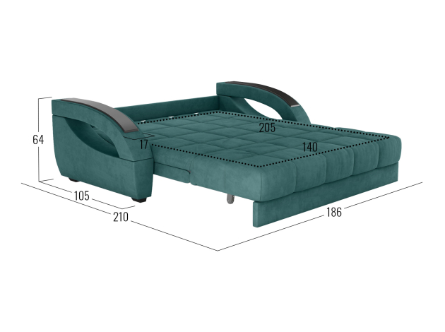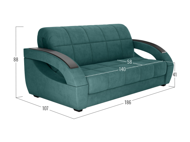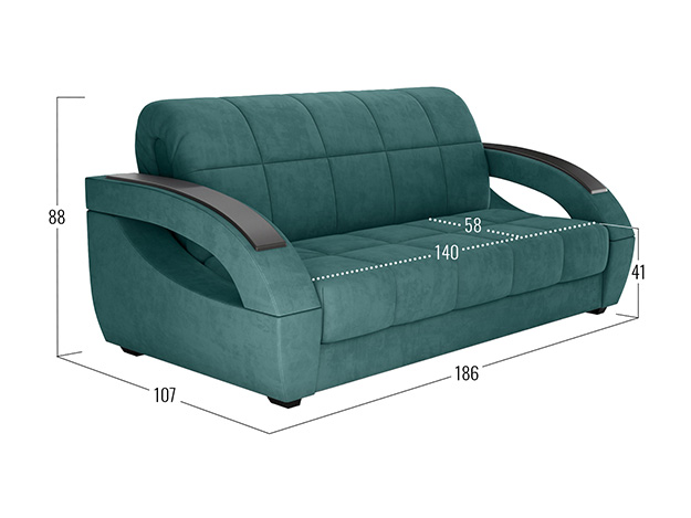 Прямой диван Оазис Зеленый, велюр 140х205 см С ящиком