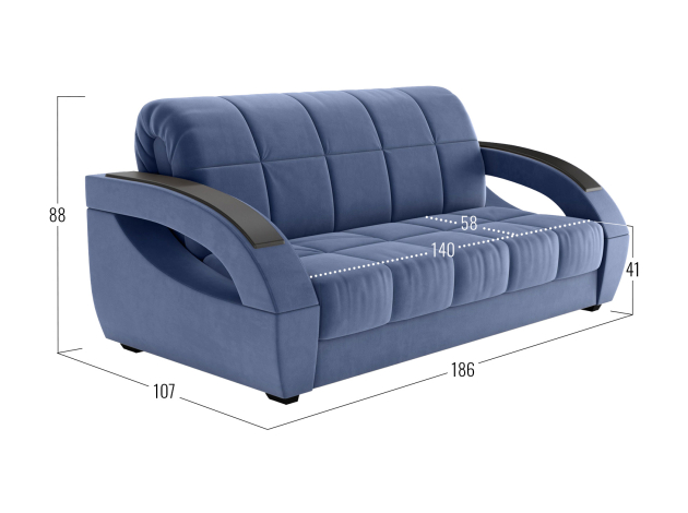 Прямой диван Оазис Деним, велюр 140х205 см С ящиком