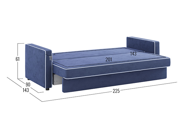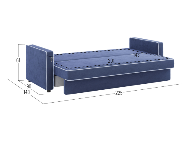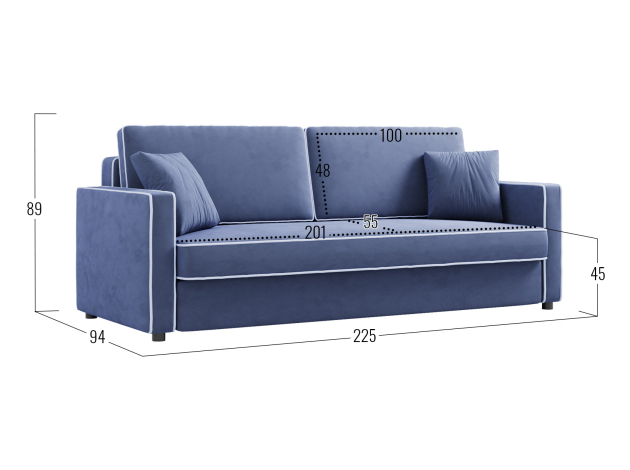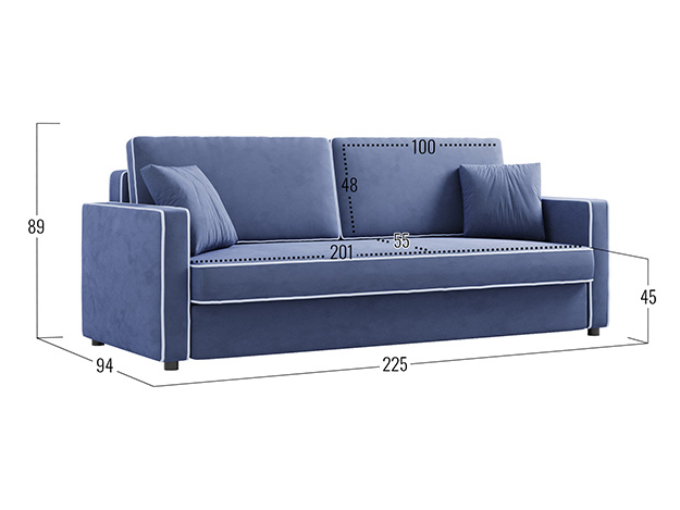 Прямой диван Орлеан Синий, велюр