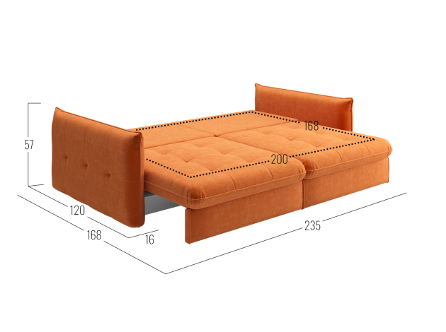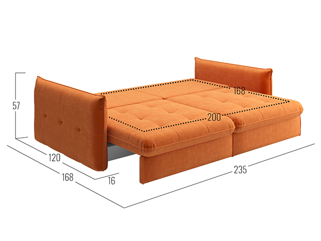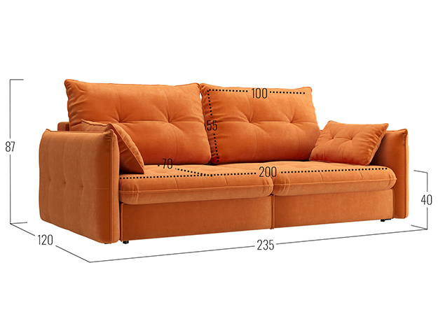 - Посадочное место без подушек (ШхГ): 200х100 см.