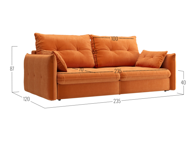 - Размер подушек (ВхШхГ): 55 х 100 х 25 см (2 шт.).