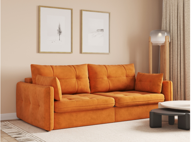 Прямой диван Патрис гармонично дополнит любой интерьер и станет отличным решением для комфортного отдыха. Плавные изгибы подчеркнуты декоративным кантом. Подушки, украшенные каретной стяжкой, помогут регулировать глубину сиденья и занять наиболее удобное положение. Гладкий шелковистый материал обивки приятен на ощупь и обладает эффектом дорогой матовой фактуры. Модель безупречно выглядит со всех сторон и подойдет для зонирования комнаты. При помощи механизма трансформации диван легко превращается в ровное спальное место, по удобству сравнимое с полноценной кроватью. Вместительный короб позволит хранить необходимые постельные принадлежности.