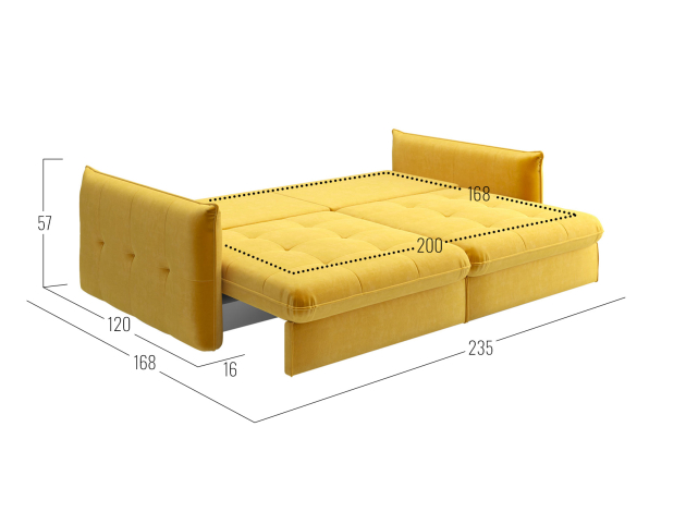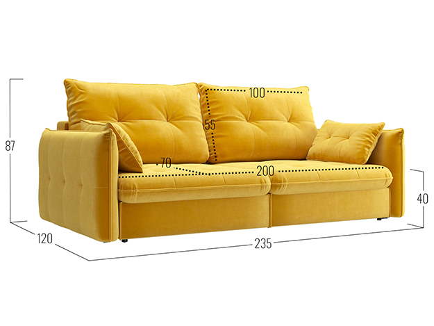 - Посадочное место без подушек (ШхГ): 200х100 см.