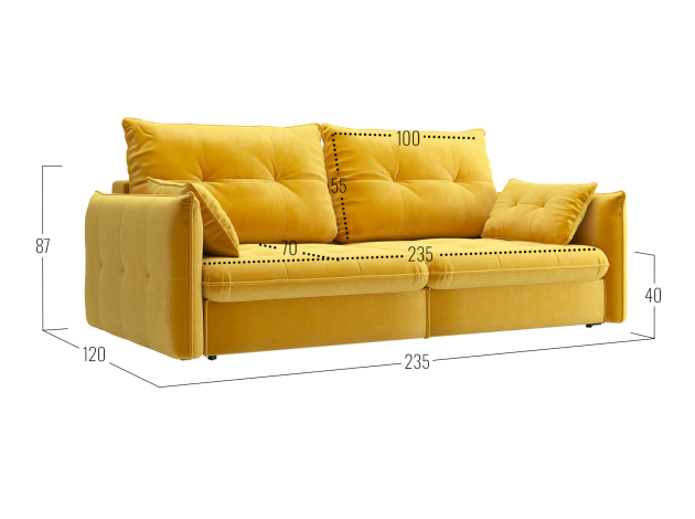 - Размер подушек (ВхШхГ): 55 х 100 х 25 см (2 шт.).