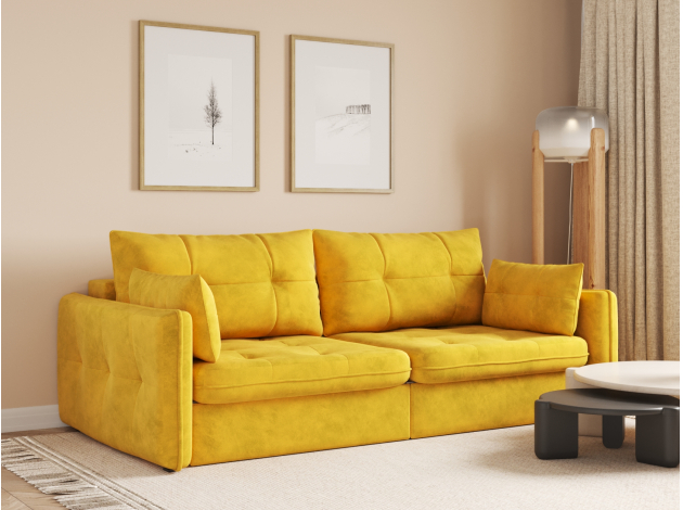 Прямой диван Патрис гармонично дополнит любой интерьер и станет отличным решением для комфортного отдыха. Плавные изгибы подчеркнуты декоративным кантом. Подушки, украшенные каретной стяжкой, помогут регулировать глубину сиденья и занять наиболее удобное положение. Гладкий шелковистый материал обивки приятен на ощупь и обладает эффектом дорогой матовой фактуры. Модель безупречно выглядит со всех сторон и подойдет для зонирования комнаты. При помощи механизма трансформации диван легко превращается в ровное спальное место, по удобству сравнимое с полноценной кроватью. Вместительный короб позволит хранить необходимые постельные принадлежности.