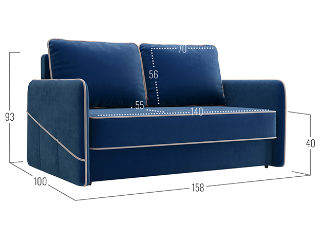 - Посадочное место без подушек (ШхГ): 140 х 77 см.