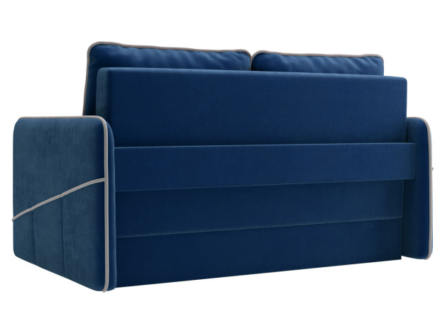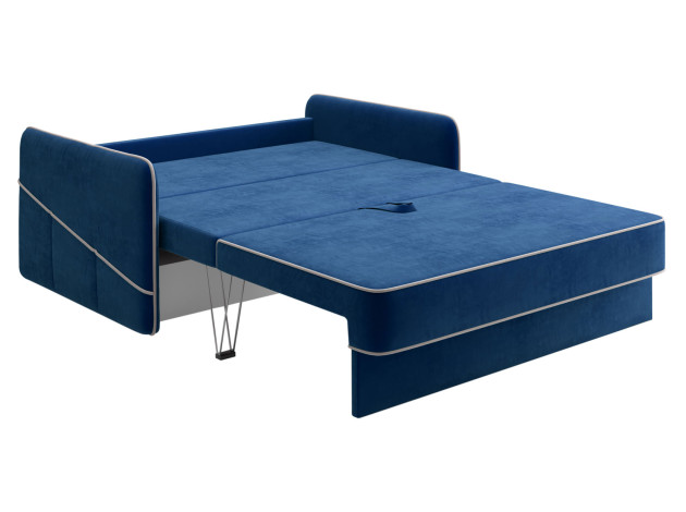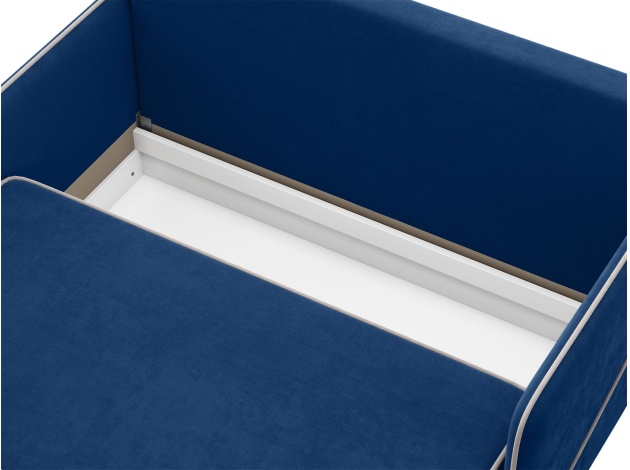 Сиденье, подлокотники и подушки украшены контрастным кантом. Такой декор подчеркивает лаконичную форму модели и выступает в роли акцента. Диван безупречно смотрится с любого ракурса, что позволяет использовать его для зонирования пространства. Ящик для белья — практичное решение для небольших помещений.
