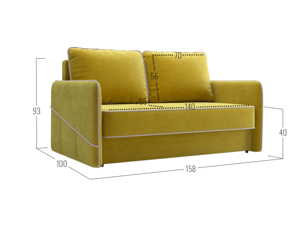 - Посадочное место без подушек (ШхГ): 140 х 77 см.