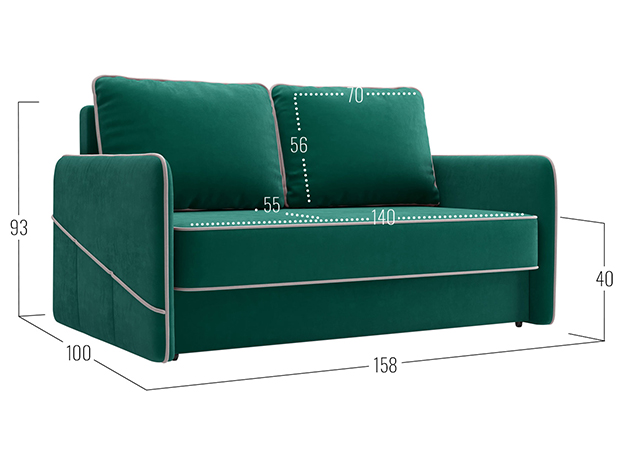 - Посадочное место без подушек (ШхГ): 140 х 77 см.