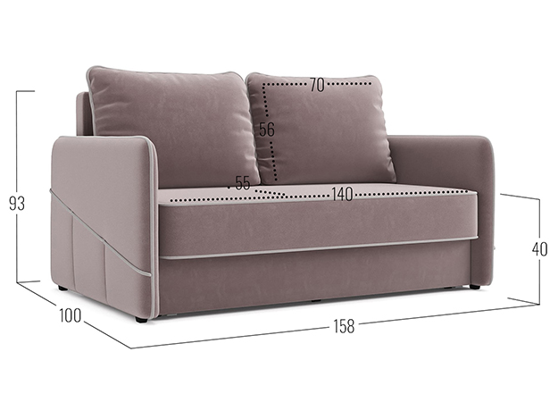 - Посадочное место без подушек (ШхГ): 140 х 77 см.