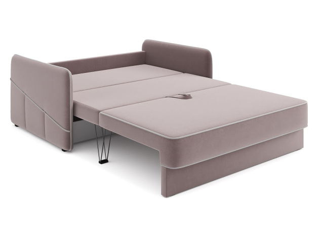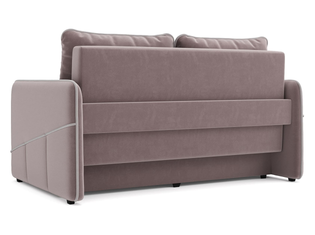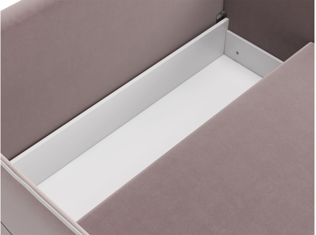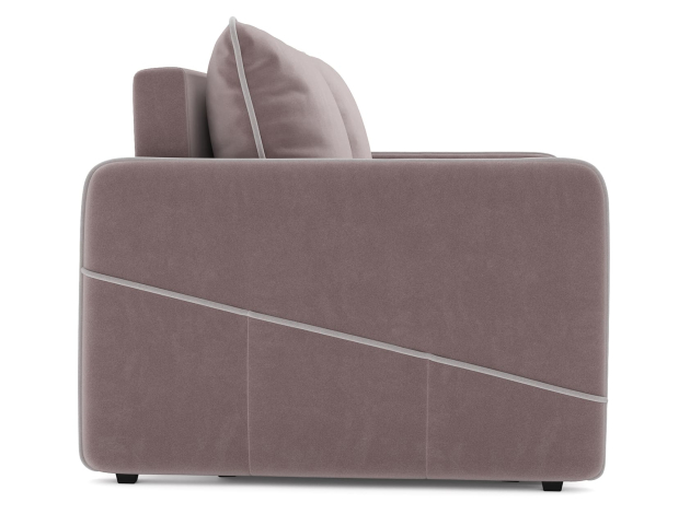 Сиденье, подлокотники и подушки украшены контрастным кантом. Такой декор подчеркивает лаконичную форму модели и выступает в роли акцента. Диван безупречно смотрится с любого ракурса, что позволяет использовать его для зонирования пространства. Ящик для белья — практичное решение для небольших помещений.