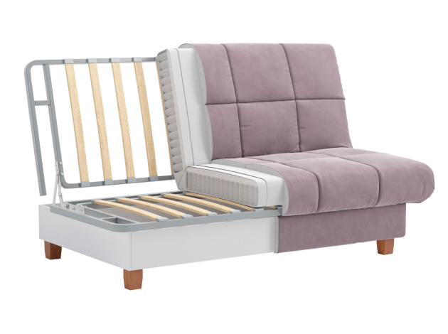 Спинку можно зафиксировать для отдыха сидя или полулежа, а также полностью откинуть на время сна. В разложенном виде образуется комфортное спальное место без лишних стыков и перепадов высоты. Для хранения постельных принадлежностей есть вместительный бельевой короб.