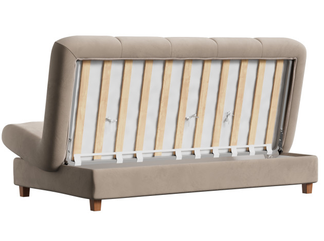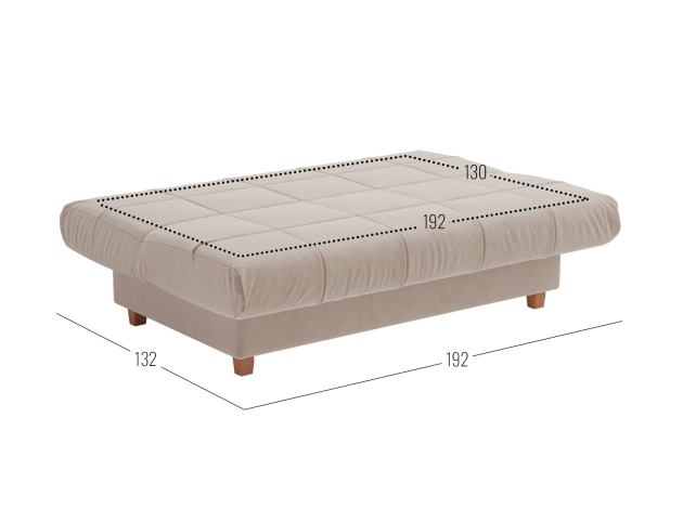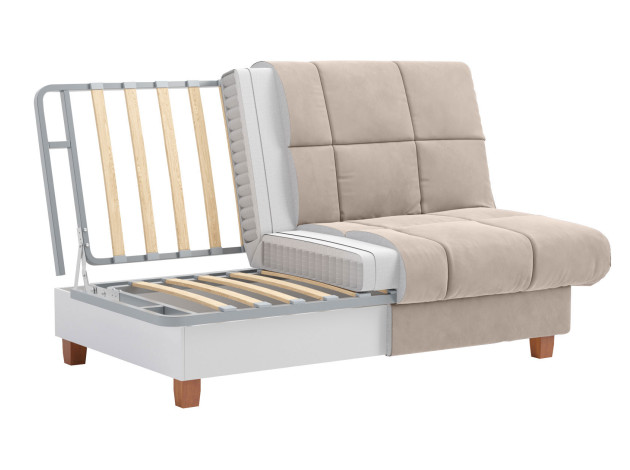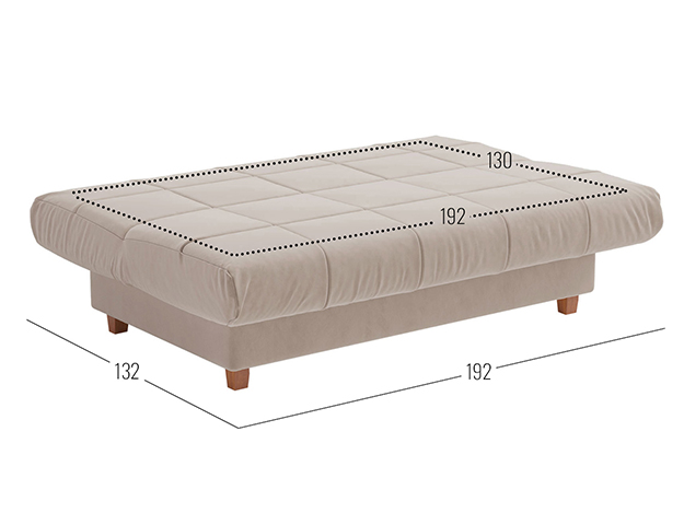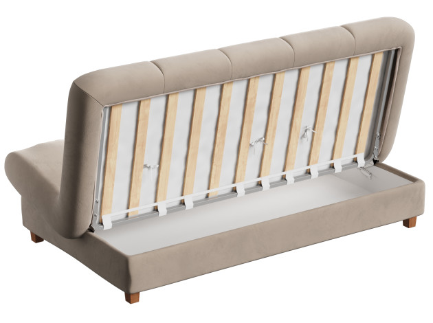 Спинку можно зафиксировать для отдыха сидя или полулежа, а также полностью откинуть на время сна. В разложенном виде образуется комфортное спальное место без лишних стыков и перепадов высоты. Для хранения постельных принадлежностей есть вместительный бельевой короб.