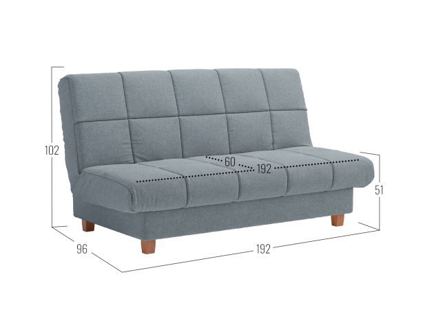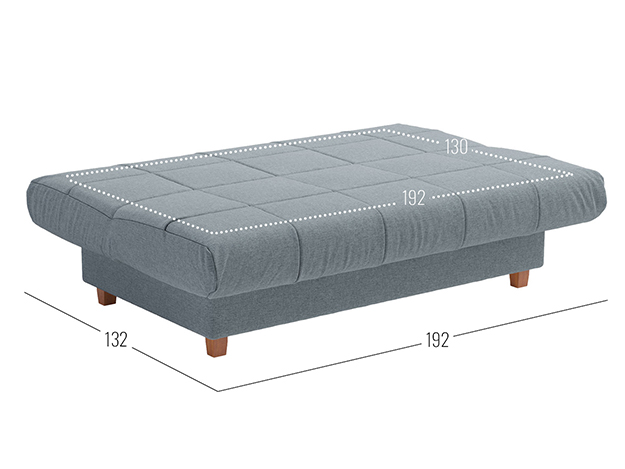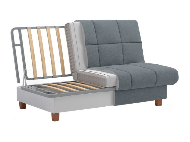 Спинку можно зафиксировать для отдыха сидя или полулежа, а также полностью откинуть на время сна. В разложенном виде образуется комфортное спальное место без лишних стыков и перепадов высоты. Для хранения постельных принадлежностей есть вместительный бельевой короб.