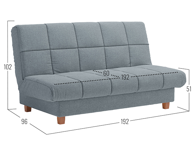 - Посадочное место (ВхШхГ): 51 х 192 х 60 см.