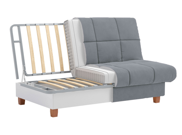 Спинку можно зафиксировать для отдыха сидя или полулежа, а также полностью откинуть на время сна. В разложенном виде образуется комфортное спальное место без лишних стыков и перепадов высоты. Для хранения постельных принадлежностей есть вместительный бельевой короб.