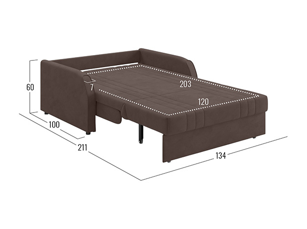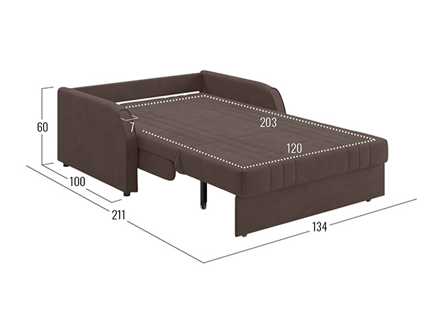 Прямой диван Сантос Коричневый, велюр 120х203 см С ящиком