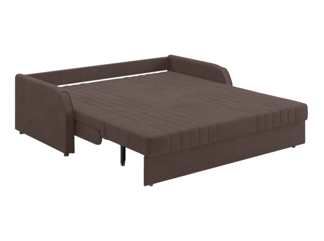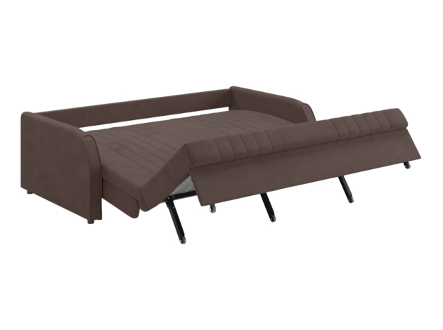 Прямой диван Сантос — отличный выбор для современного интерьера. Спинка обита основной тканью, поэтому модель можно расположить на виду, используя для зонирования большой комнаты. Декоративная строчка придает облику завершенный и привлекательный вид. В разложенном виде образуется ровное и комфортное спальное место, которое отделено от стены небольшой планкой.