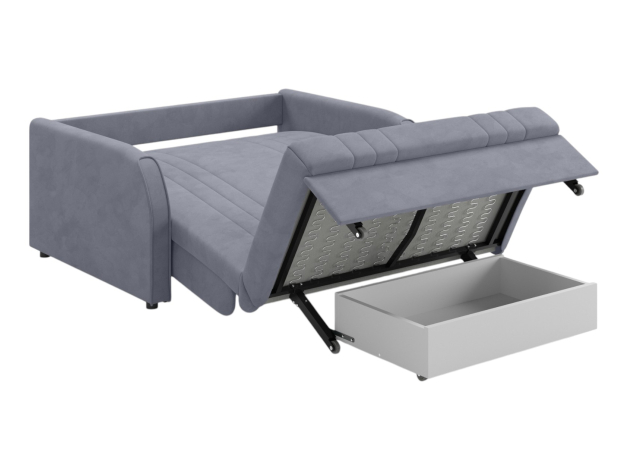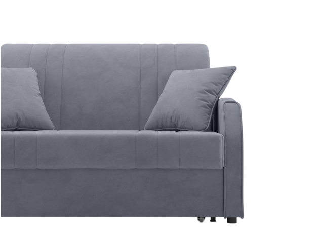 Прямой диван Сантос — отличный выбор для современного интерьера. Спинка обита основной тканью, поэтому модель можно расположить на виду, используя для зонирования большой комнаты. Декоративная строчка придает облику завершенный и привлекательный вид. В разложенном виде образуется ровное и комфортное спальное место, которое отделено от стены небольшой планкой.