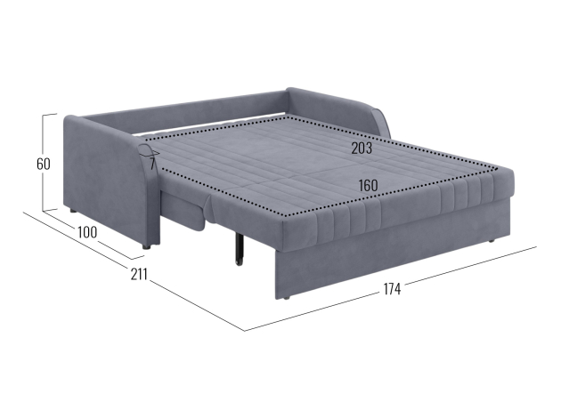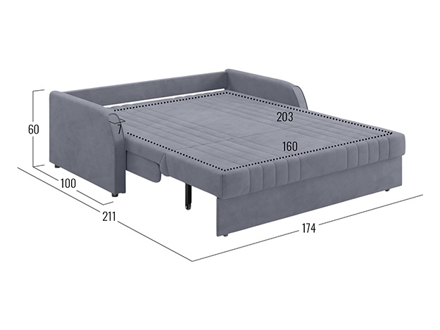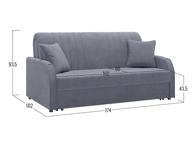 Прямой диван Сантос Серый, велюр 160х203 см С ящиком