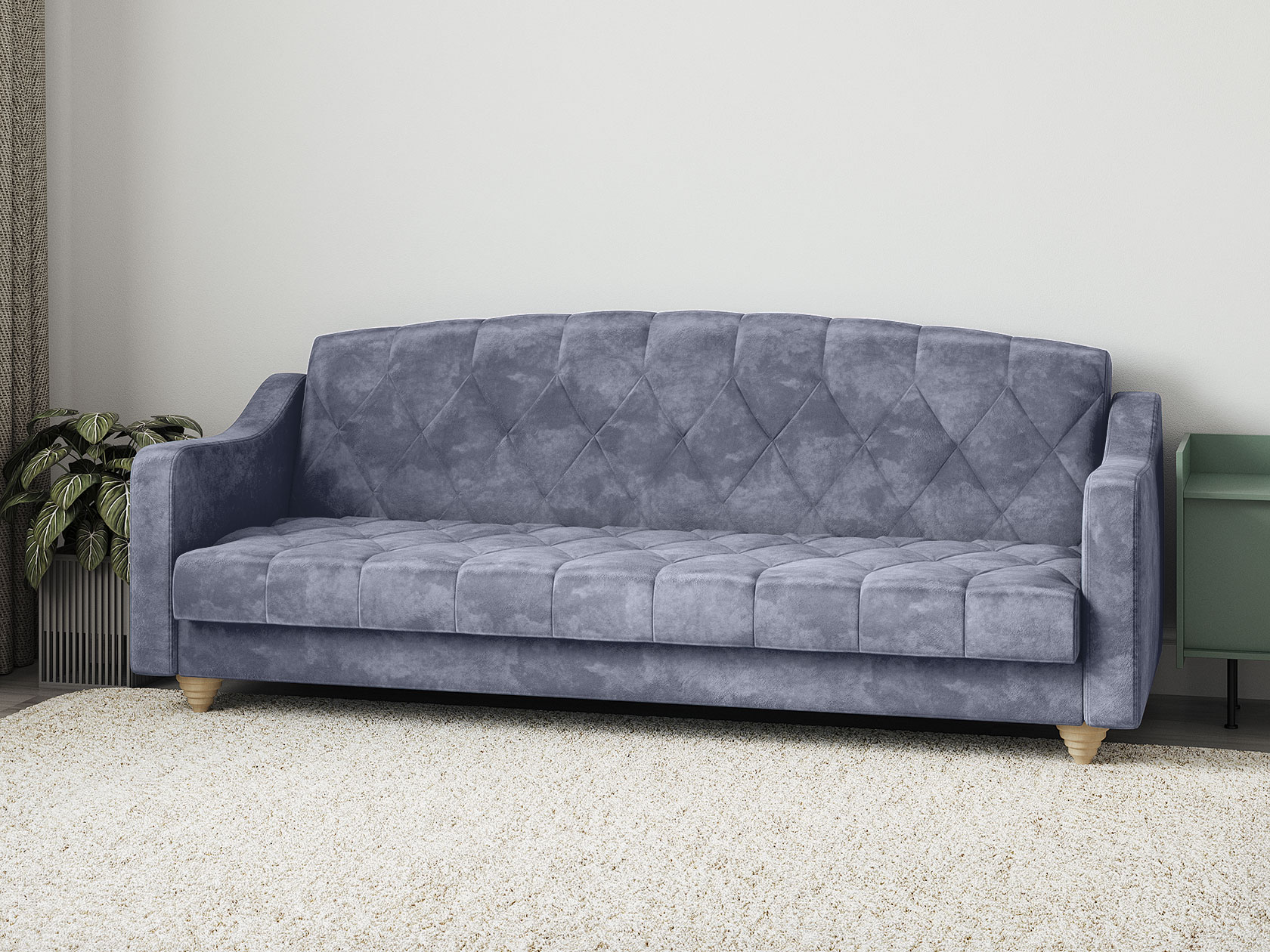 Прямой диван Сапфир Голубой, велюр
