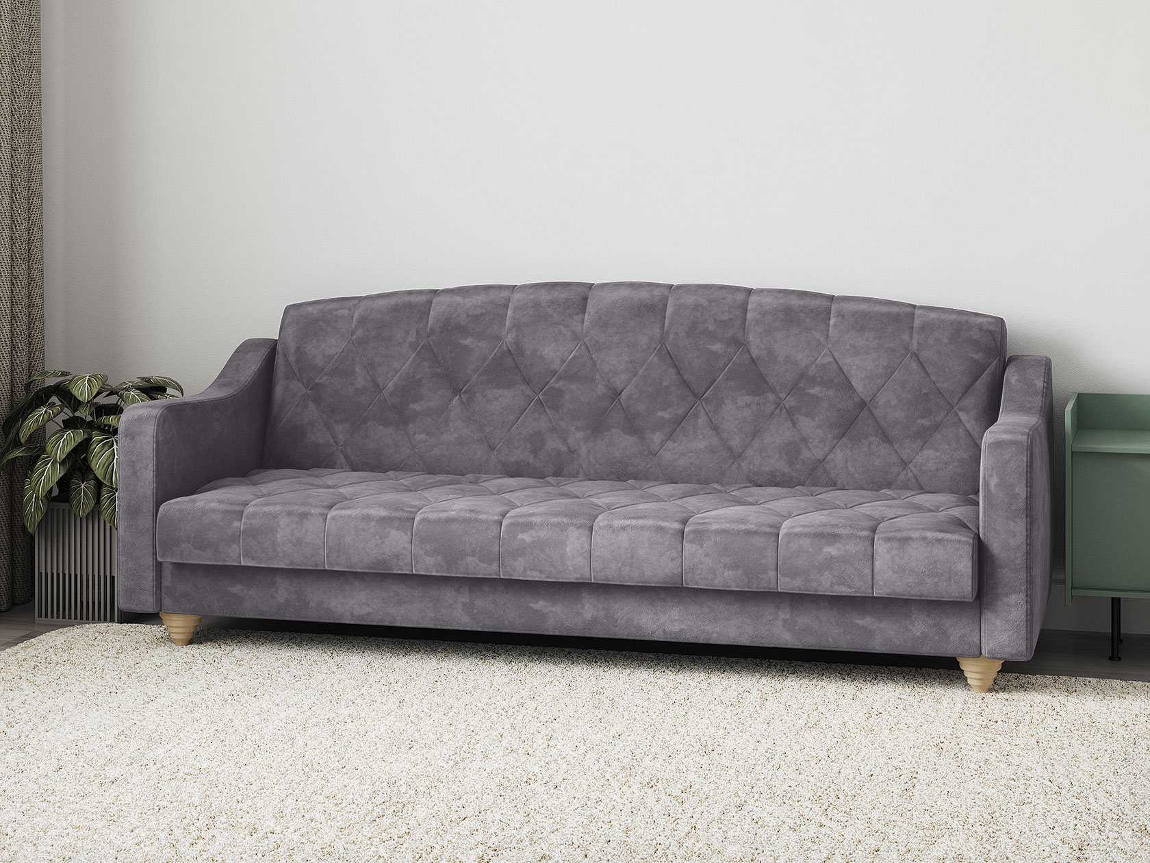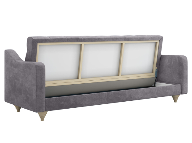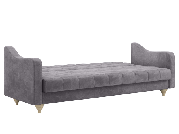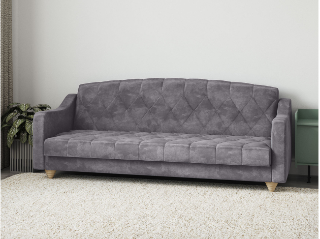 Модель легко трансформируется в ровное спальное место без стыков и перепадов высоты. Для постельных принадлежностей есть удобный бельевой короб. Приятная на ощупь обивка устойчива к износу и легко поддается чистке. Со всех сторон используется основная ткань, поэтому диван отлично смотрится с любого ракурса.