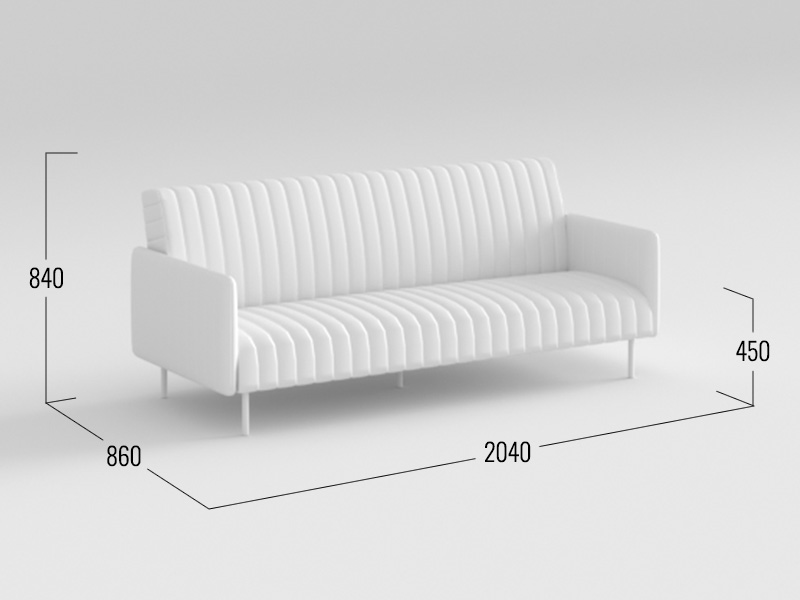 Прямой диван Стенли подходит для любого современного пространства. Узкие подлокотники экономят место, а высокие ножки визуально облегчают конструкцию и упрощают уборку. Декор в виде вертикальной стежки добавляет стильный акцент.