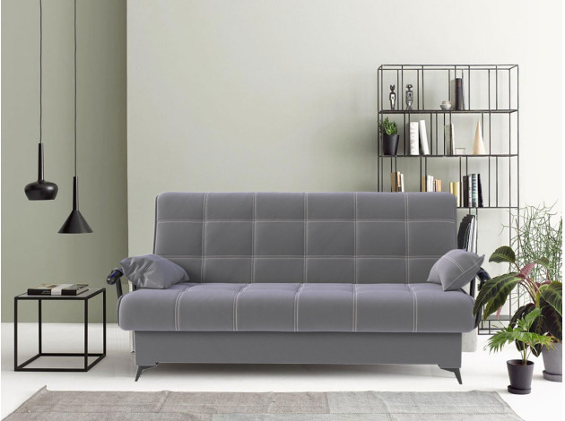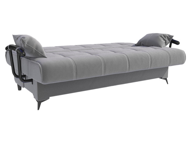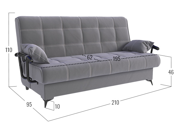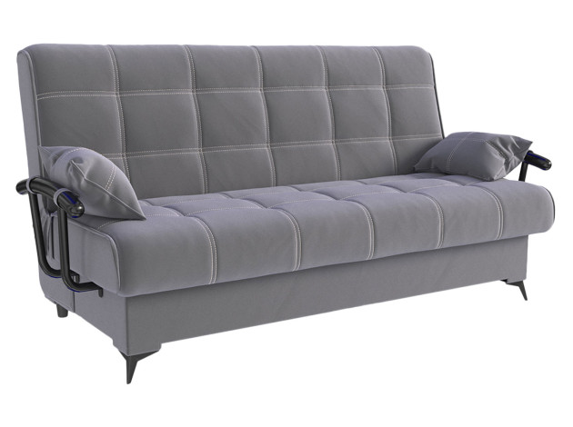 Прямой диван Теон с подлокотниками — комфортабельная и практичная модель с привлекательным дизайном. Двойная прострочка, подлокотники с подушками и высокие элегантные ножки создают запоминающийся облик. Механизм трансформации раскладывается не касаясь пола, поэтому не царапает покрытие и не сдвигает ковер. Бельевой ящик создает дополнительное место для хранения.